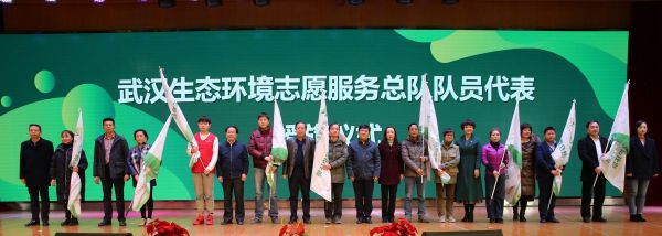 武汉生态环境志愿服务总队成立授旗。