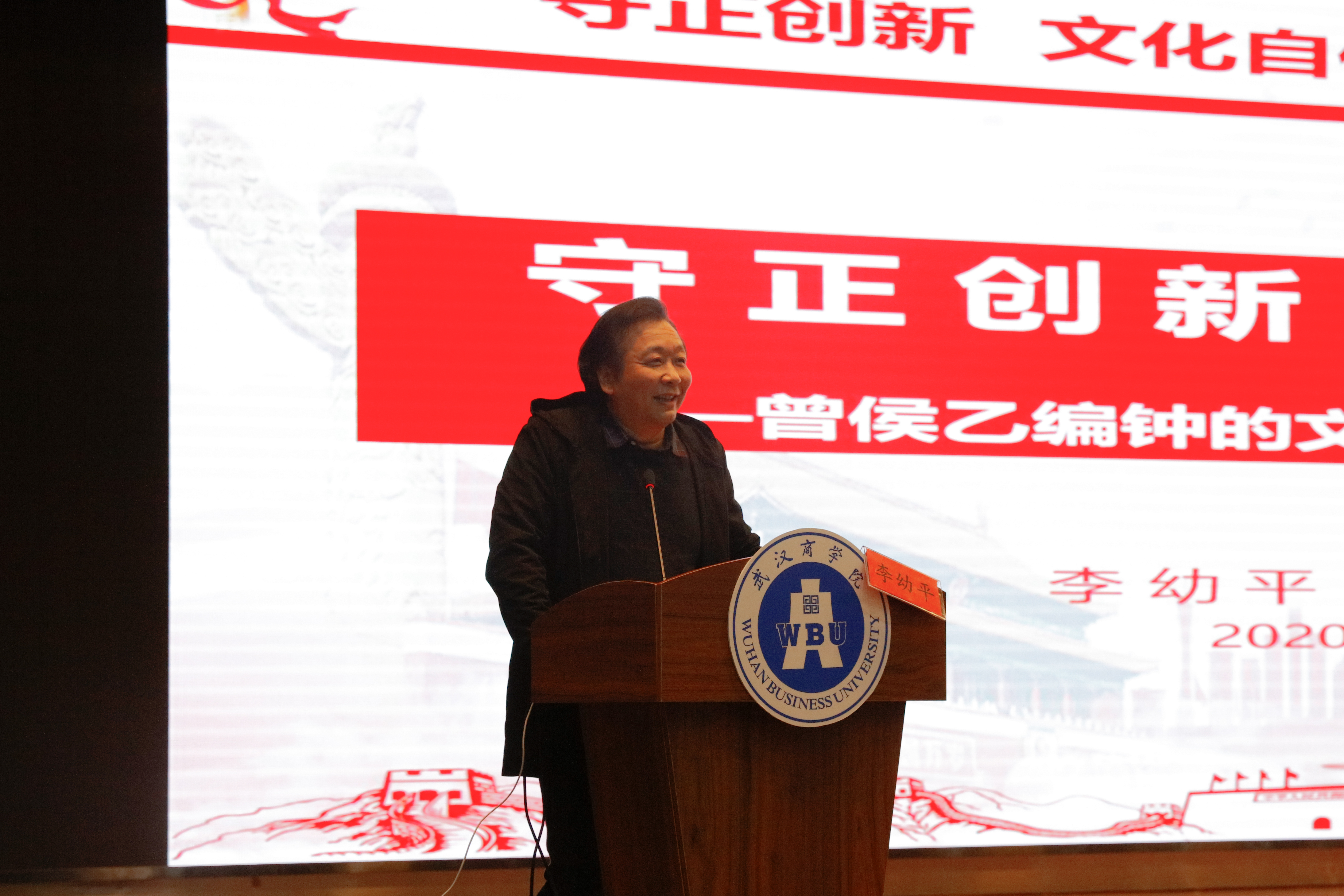 本网讯 12月15日,第218期致远讲坛在大学生活动中心举行。中国艺术研究院博士、武汉音乐学院副校长李幼平以“守正创新,文化自信”为主题,带领同学们走进编钟的奇妙世界。