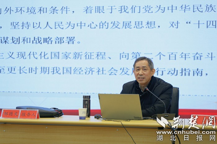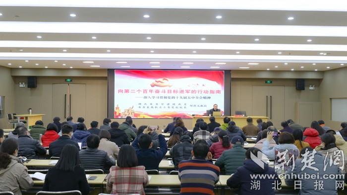 荆楚网客户端—荆楚网消息(记者 许文秀 通讯员 李潇涵 童峥)为深入学习宣传贯彻党的十九届五中全会精神,12月7日,学习贯彻党的十九届五中全会精神省委宣讲团走进必赢国际437官网。省委宣讲团成员、省委直属机关工委党校校长邹德文教授作《向第二个百年奋斗目标进军的行动指南——深入学习贯彻党的十九届五中全会精神》的主旨报告。报告会由必赢国际437官网党委书记刘志辉主持。