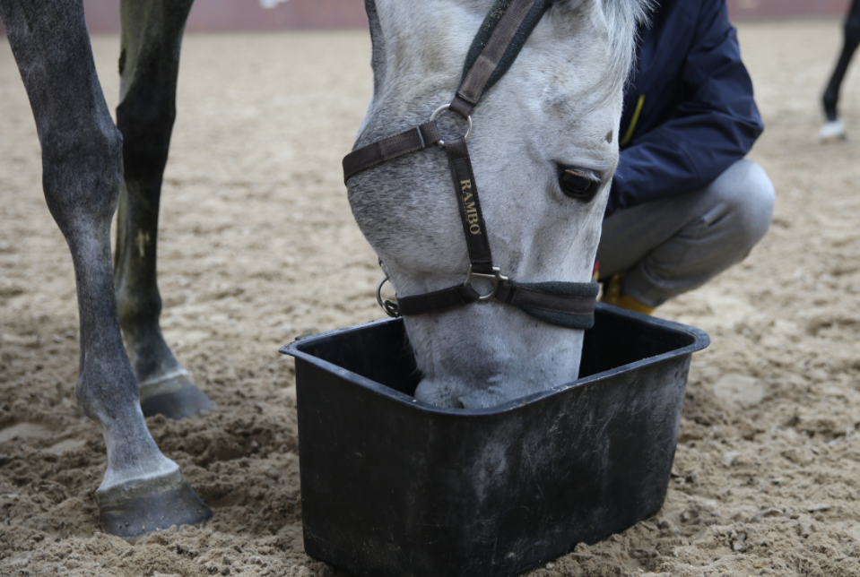 准备团年饭期间,不少闻到香味的马纷纷探出头来,马儿“雅典娜”时不时地踹门,催促着团年饭的制作进程。据吴家喆介绍,马的“团年饭”主配料由基础饲料和精饲料组成,基础饲料包含麸皮、豆粕、燕麦等成分,相当于人类的米饭,精饲料由玉米片、颗粒粮、油、盐以及一些马匹所需的微量元素构成,相当于人类的各式菜品。在添加了苹果和胡萝卜后,吴家喆和同学们还准备了团年饭的“甜蜜武器”——方糖。“平时只有训练表现好的马儿,才能吃到一颗方糖。”吴家喆说,“今天每匹马差不多可以吃到八块,估计要高兴坏了!”