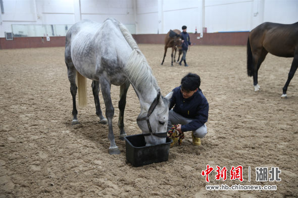 为了照顾马儿,这已经是吴家喆第三年留在学校过年了。每天早上5点半起床,一天为马儿准备四餐饮食,带马遛弯训练,晚上9点多才能收工休息,成为了吴家喆留校的作息时间表。“我家就在武汉,回家方便,过年我还是想和最喜欢的马儿在一起,家人都很支持。”吴家喆说。