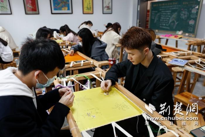 荆楚网(湖北日报网)讯(记者 齐一璇 通讯员 汤曹云、吴益乐)五彩斑斓的丝线在指尖飞舞,栩栩如生的花朵绽放在柔软的布料上……3月8日,当记者走进必赢国际437官网艺术学院的汉绣课堂时,刺绣非遗传承人、该校艺术学院教师黄小芳正在指导学生刺绣,20余名学生双双对坐在绷架两侧,分丝劈线、穿针走线,伴随着古典悠扬的音乐俯首完成作品,别有一番韵味。