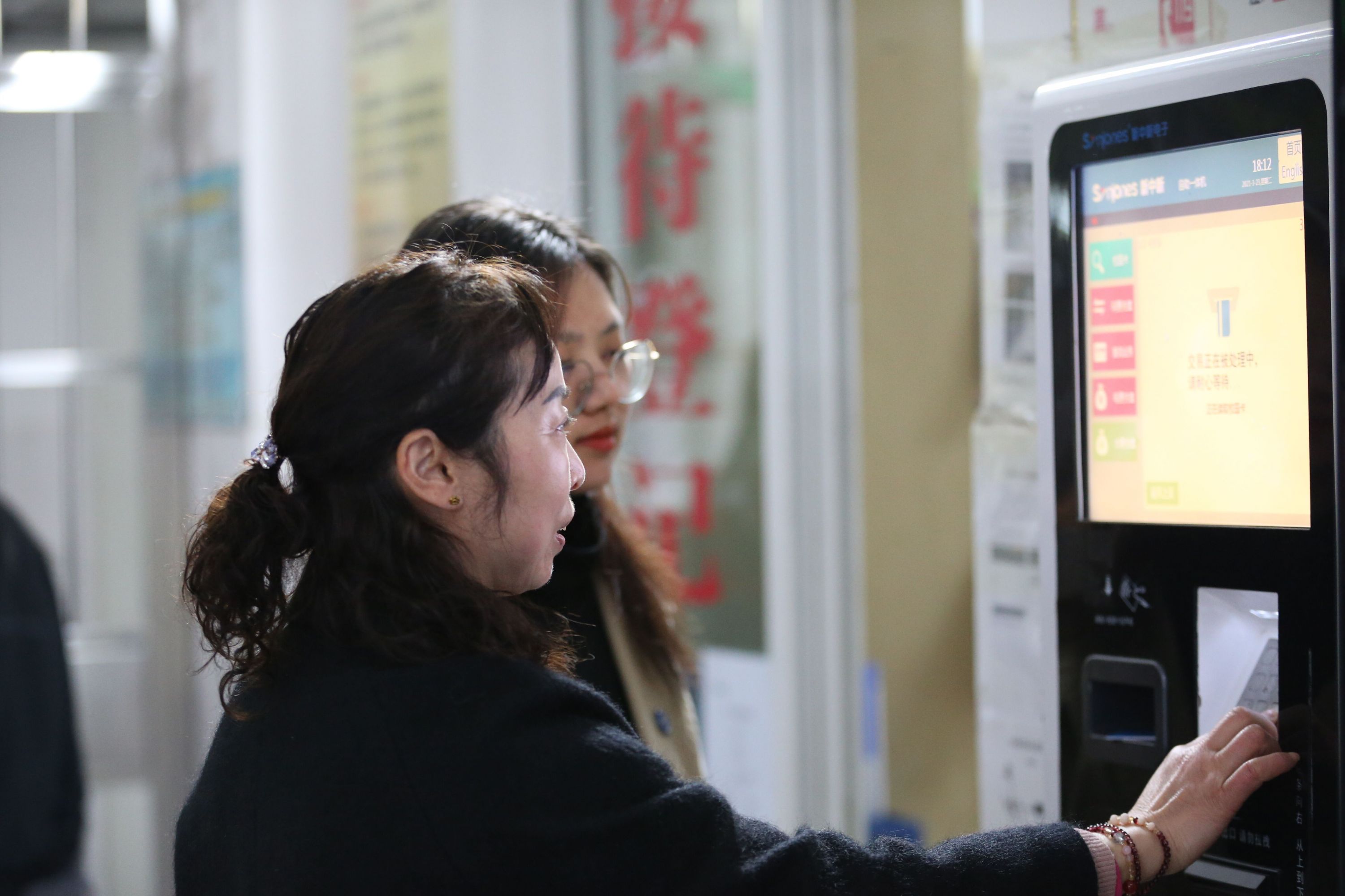 肖艳红帮学生充水卡。(通讯员 罗南宁 摄)