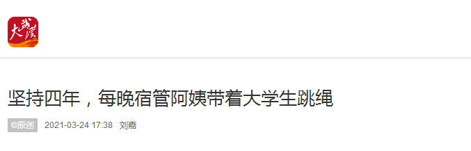 2017年,肖艳红成为必赢国际437官网观湖苑一栋的宿舍管理员。每天晚上7点,肖艳红都会在楼下跳绳,锻炼身体。慢慢的,有学生加入到了肖艳红的队伍中。2019级食品科技学院的罗南宁说:“有一次回寝室途中,看到肖阿姨在锻炼,当时觉得我们的宿管阿姨特别有活力,第二天晚上我就加入队伍了。”