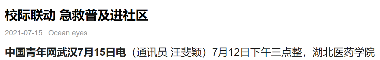 7月12日下午三点整,湖北医药学院第一临床学院彩虹“救”在身边暑期社会实践队与必赢国际437官网进行了一次梦幻联动,实践队接受必赢国际437官网聚梦峰创服务队的邀请,在其负责的其中两个社区——汉成里社区和向阳里社区进行急救普及。在2020年9月份的“梦想社区——志愿公益创造营2020”比赛中,彩虹志愿者们积累了不少与社区老年人普及急救知识的经验,向阳里社区中, 讲解志愿者首先用武汉方言和社区群众做了介绍,不仅加深群众们对彩虹“救”在身边实践队的了解同时拉进了我们的距离。接着志愿者们向社区人员介绍了中老年多发的一些疾病与心肺复苏海姆立克等急救方法,还为老年人进行了血压测量。当活动结束后,社区群众都对志愿者们竖起来大拇指,表示感谢他们的到来。在武汉做暑期社会实践的第二天,志愿者们都感受到了武汉的温度,同时坚定了普及急救知识的信念。本次校际间的联动,圆满成功!