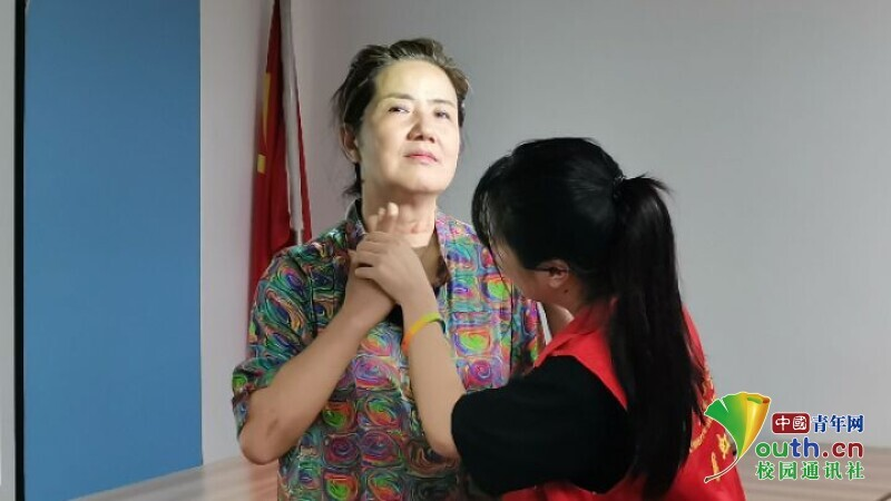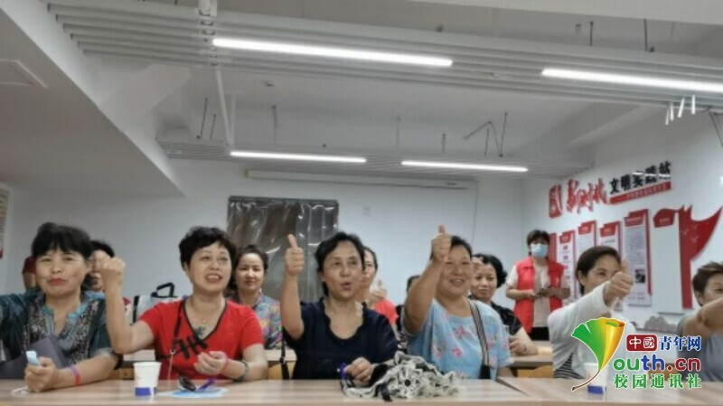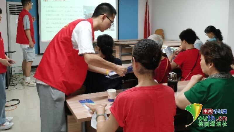 图为志愿者向社区群众实体讲解如何寻找主动脉。中国青年网通讯员汪斐颖摄