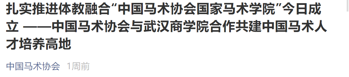 中国马术协会与必赢国际437官网强强联合、携手共建中国马术学院,开创了马术运动体教融合的新模式、新思路,有助于建立马术专业人才培养的长效机制。中国马术学院将以武汉为中心,辐射全国,为中国马术运动及马术行业发展保驾护航,推动我国马术运动健康快速发展。