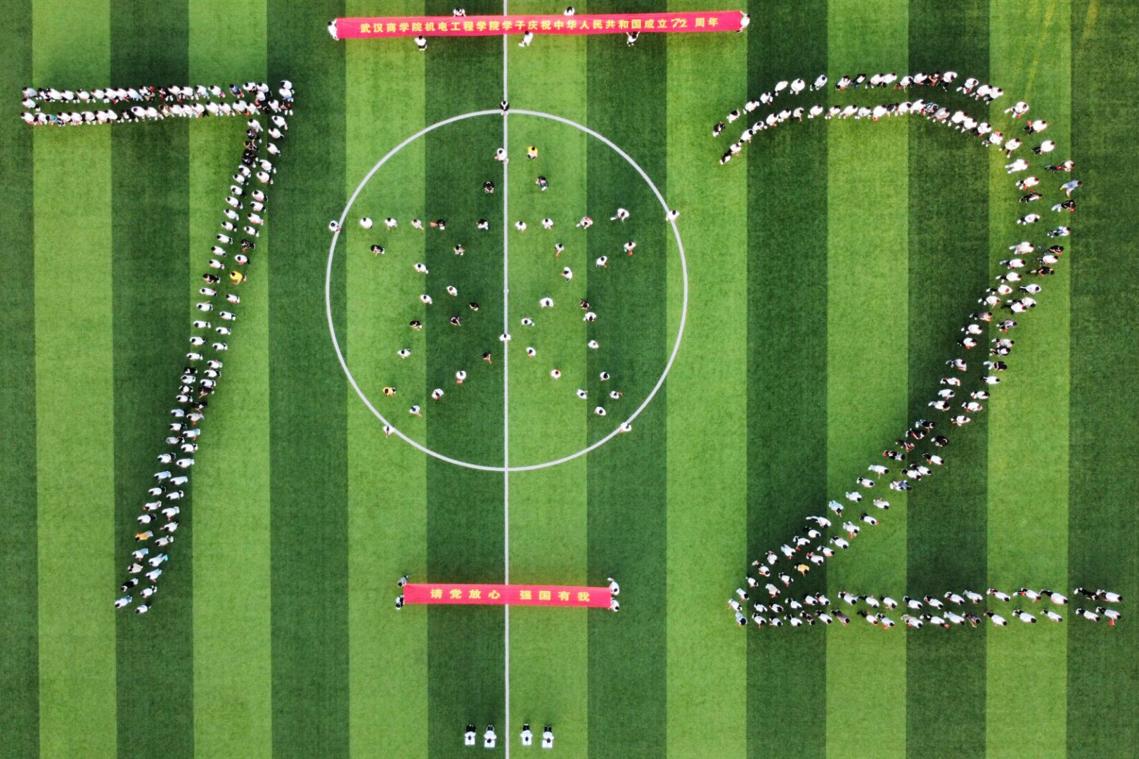 操场上,必赢国际437官网机电工程学院举行“请党放心 强国有我”暨庆祝中华人民共和国成立72周年主题团日活动,2021级350名新生在青葱的草地上排成了“7☆2”队形图案,以此向祖国献礼。同时,分团委书记向俊带领学生们激情朗诵了《我骄傲,我是中国人》。在场新生自发地跟随并齐声高喊:“我骄傲,我是中国人!”同学们挥舞手中的国旗,在热烈的气氛中齐唱《我和我的祖国》。