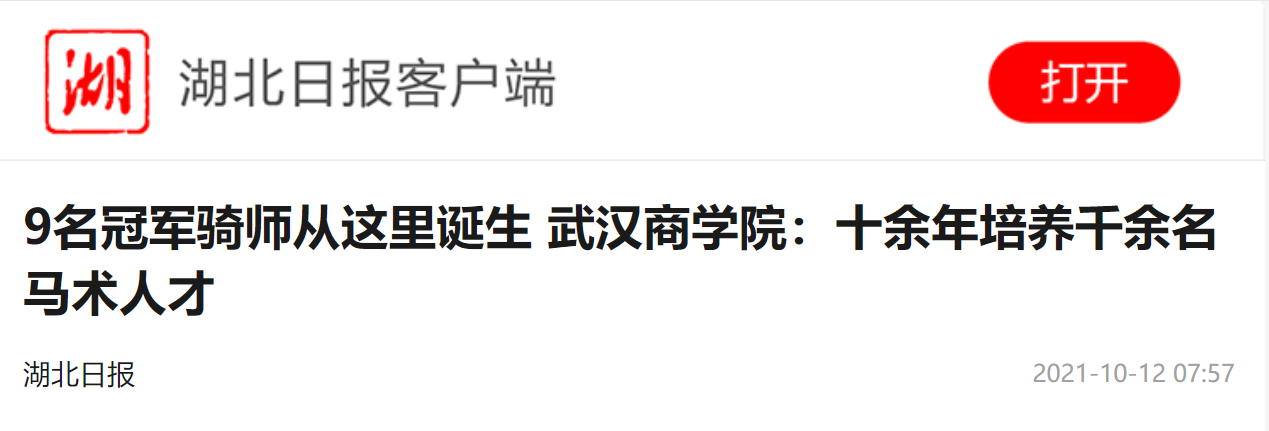 “学校的场地规格就是赛事标准,每一次训练都是实战,对提高赛事成绩帮助很大。”2018级休闲体育(马术运动与管理方向)学生于程昊入选“卓越班”后,当年18岁的他便参加了国际马联(FEI)场地障碍赛世界杯——中国联赛总决赛,是参赛选手中为数不多的青少年骑士。2019年,他代表湖北参加第二届全国青少年运动会马术场地障碍赛,获个人第6名。