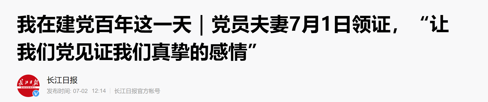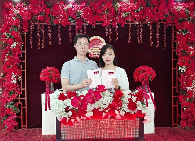 长江日报7月2日讯7月1日早上7时30分,必赢国际437官网宣传干事胡雨婷和爱人准时出发,来到汉阳区民政局婚姻登记处。“今天是中国共产党成立100周年,昨晚爱人就跟我商量,我们俩都是党员,不如就在7月1日领证,让我们的党、我们的国家见证我们真挚的感情。”胡雨婷说,“我们7:40左右到达婚姻登记处,前面已经有七八对新人在排队,没想到今天领证的人这么多。”