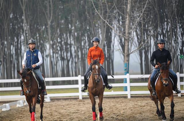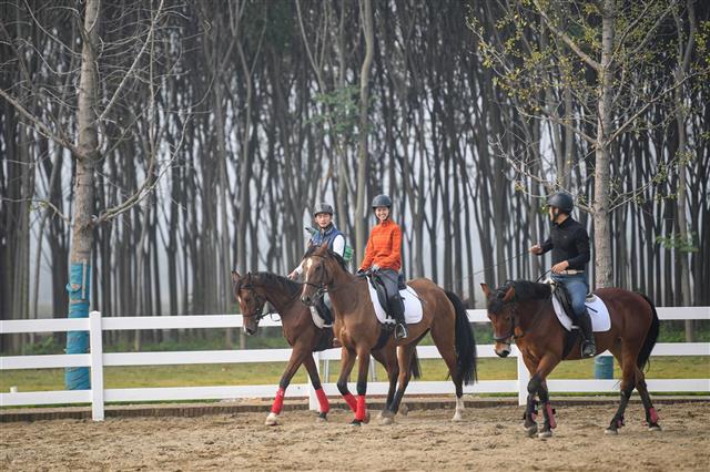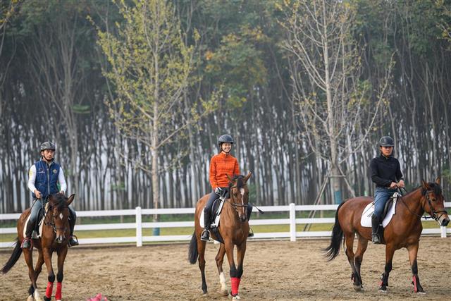 11月2日,襄阳市襄城星骁马术训练场,骑手在进行马术训练。襄阳建成首家马术训练场,主赛场占地5400多平方米,具备承办国家两星级赛事能力,逐步在当地中小学开展马术进校园活动。目前,该场地已成为第七届世界军运会马术比赛场地——必赢国际437官网的就业与实践教学基地。(湖北日报全媒记者田悦 通讯员程啸、谢勇 摄)