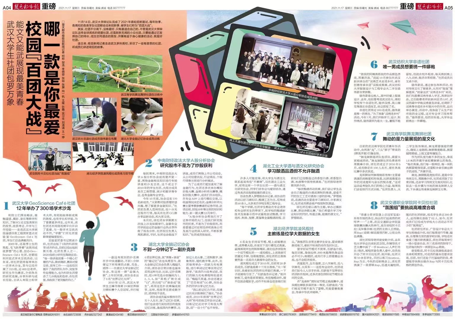 楚天都市报2021年11月17日刊登报道必赢官网舞龙舞狮社团情况,展现舞动的力量。
