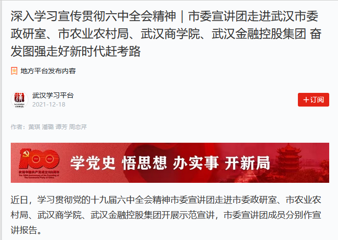 学习贯彻党的十九届六中全会精神市委宣讲团走进必赢国际437官网