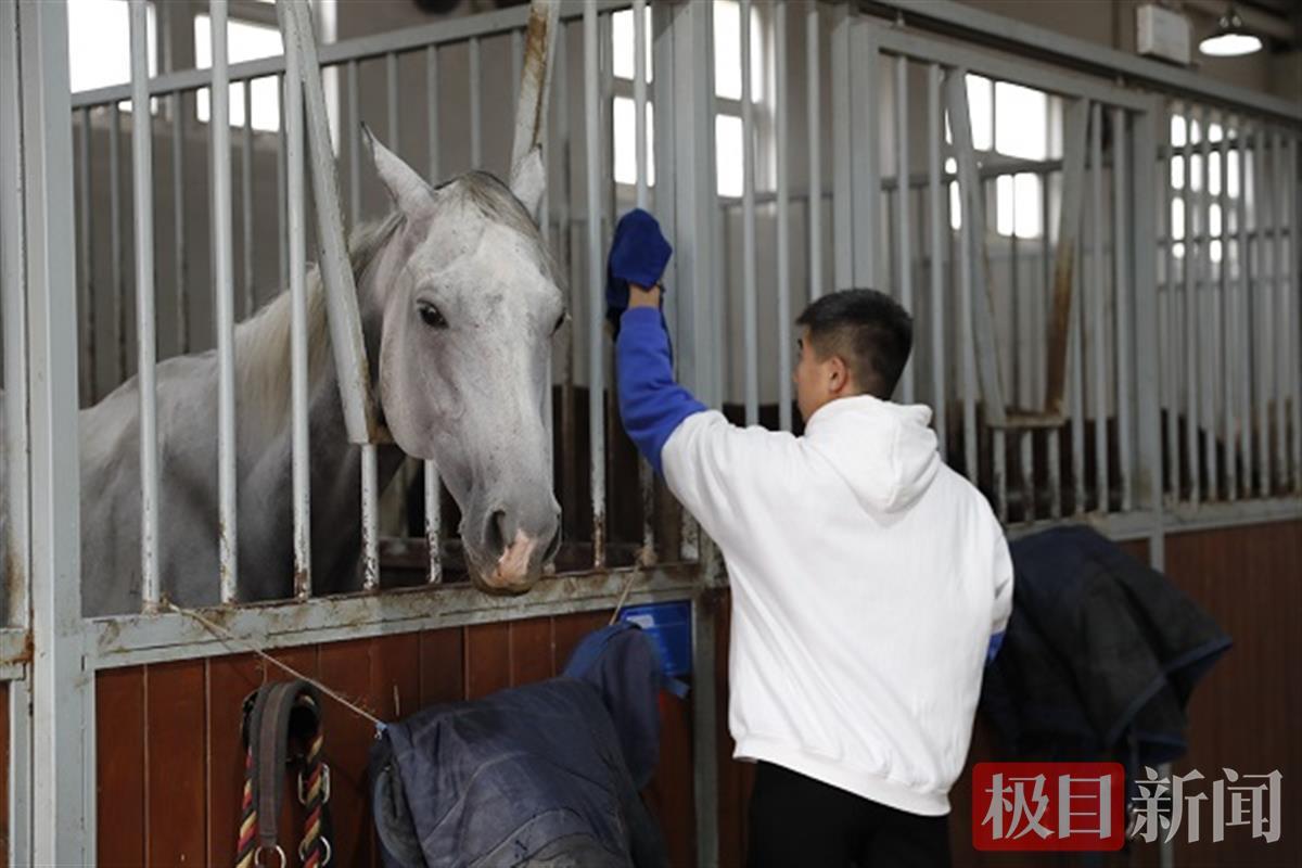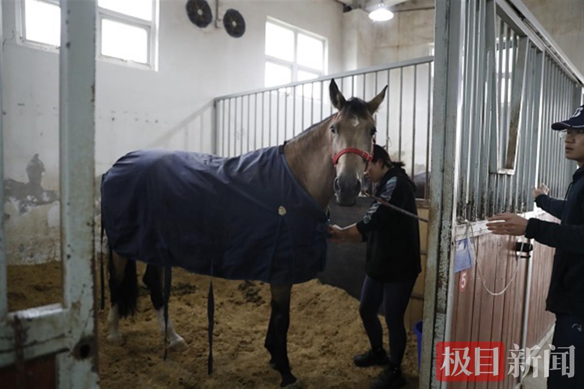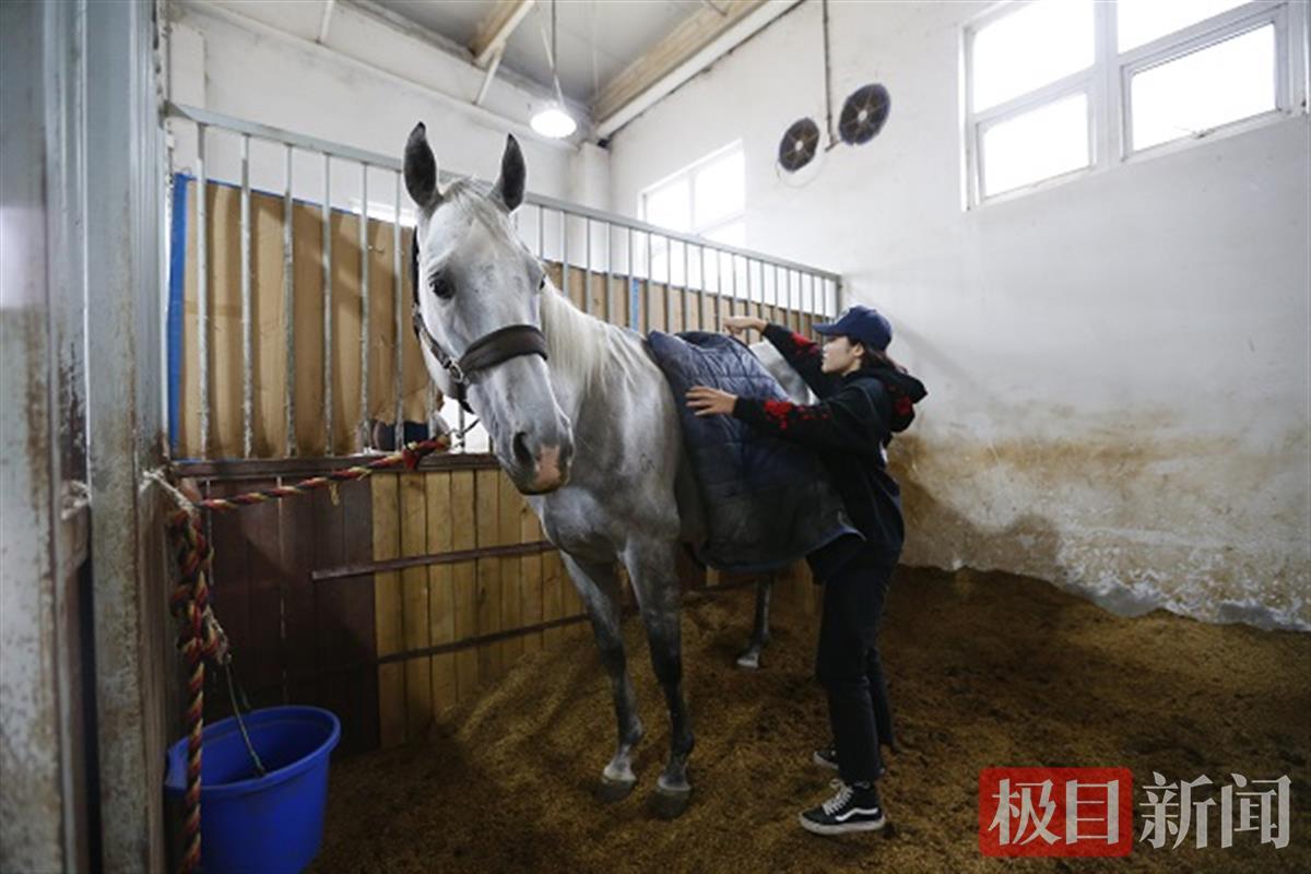 “气温已经降下来了,该给马儿穿棉衣了。”上午9时30分,该校马术专业2020级的学生程思怡观察马房内的室内温度计后,给马儿穿上了棉衣。“马的体感比人更敏感,体温也比人低。”程思怡说,马到了冬天易感冒,学校里每一匹马的健康状况都备受关注。
