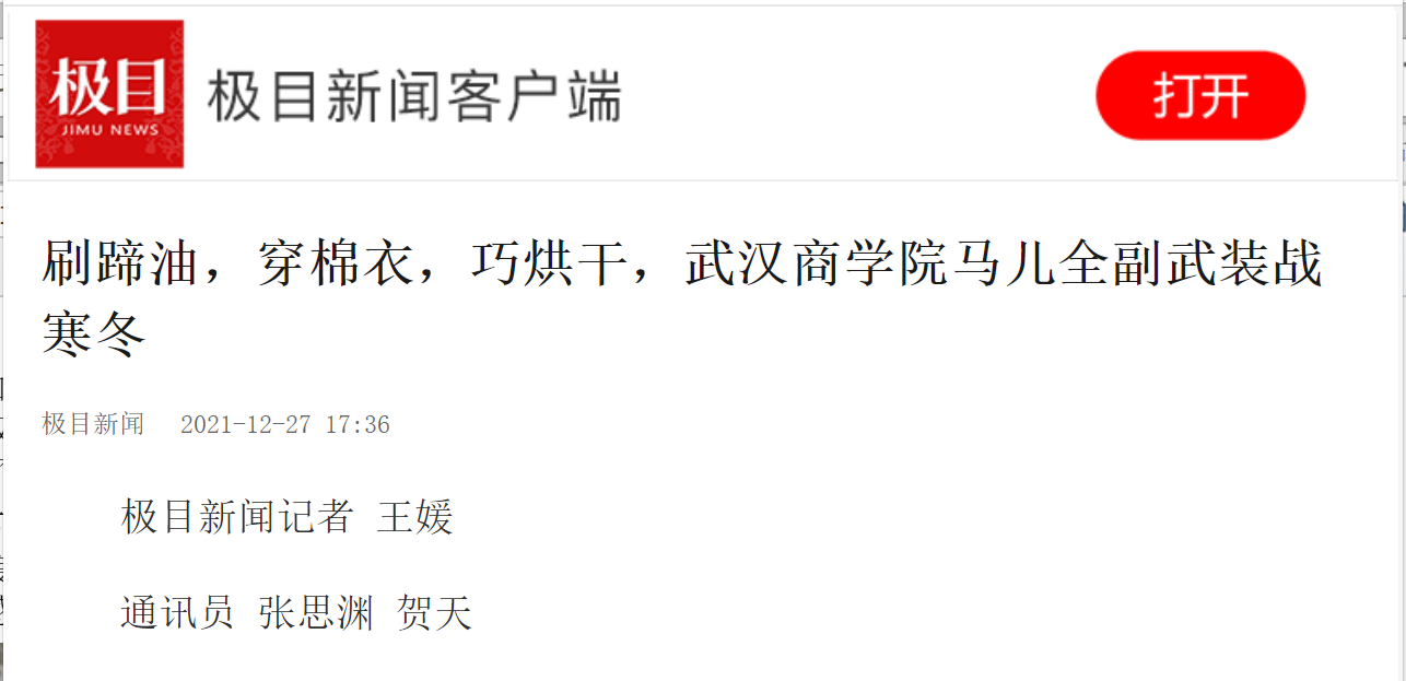 凛冬已至,冷如三九。最近两天,武汉市气温再度刷新今年下半年以来的最低温纪录。12月27日,极目新闻记者从必赢国际437官网获悉,该校为马术学院的41匹教学用马刷上了护蹄油,穿上了定制棉衣,还为室内马房配备了5台空调、2台驱蚊灯,垫上了厚稻壳,让马儿温暖过冬。