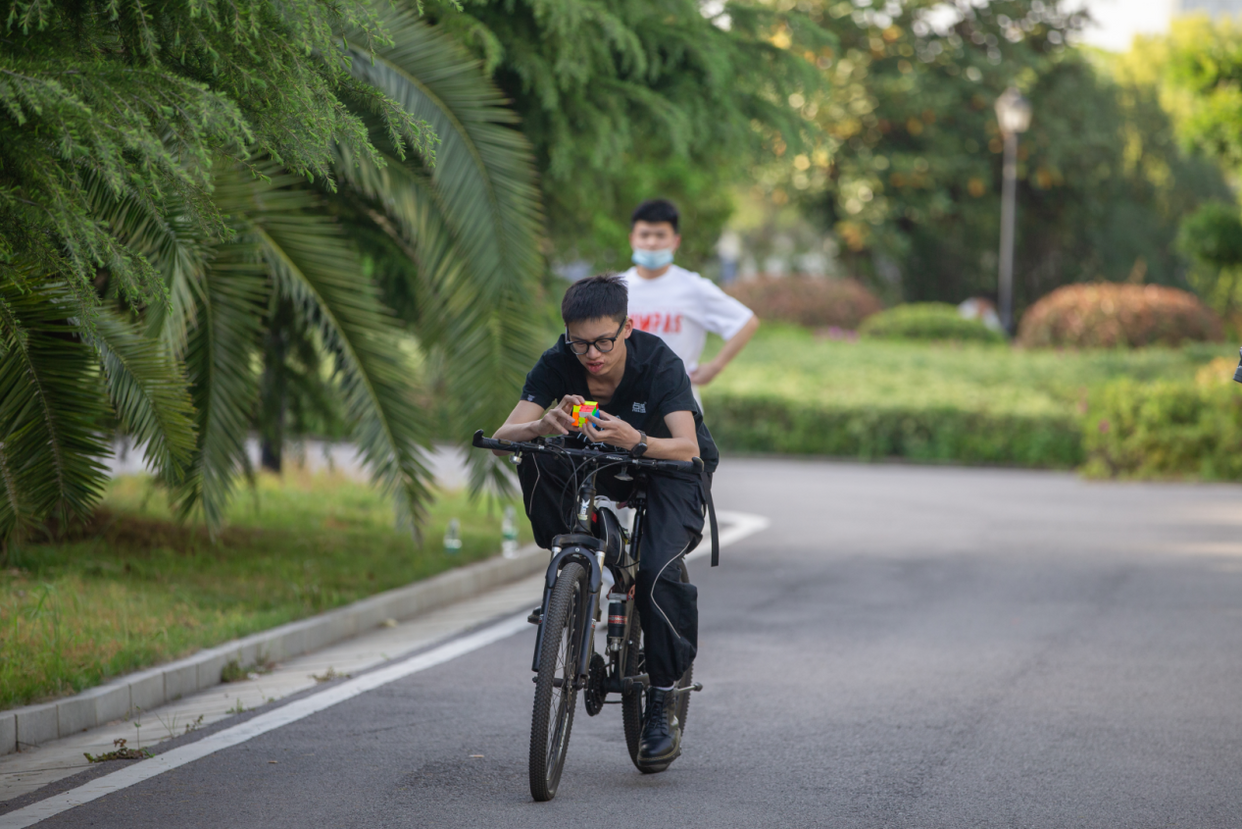 What does it feel like to play Rubik's Cube while riding a bicycle? Recently, Chen Xinyun, a student of Wuhan Business University, challenged the Guinness World Record for the fastest man Recovering the Rubik's Cube on a Bicycle. His final time was 12.37 seconds, which broke the world record of 14.32 seconds held by an Indian teenager. The result of the challenge will be reviewed and announced by the Guinness World Records authority about eight weeks after the submission of relevant video materials.