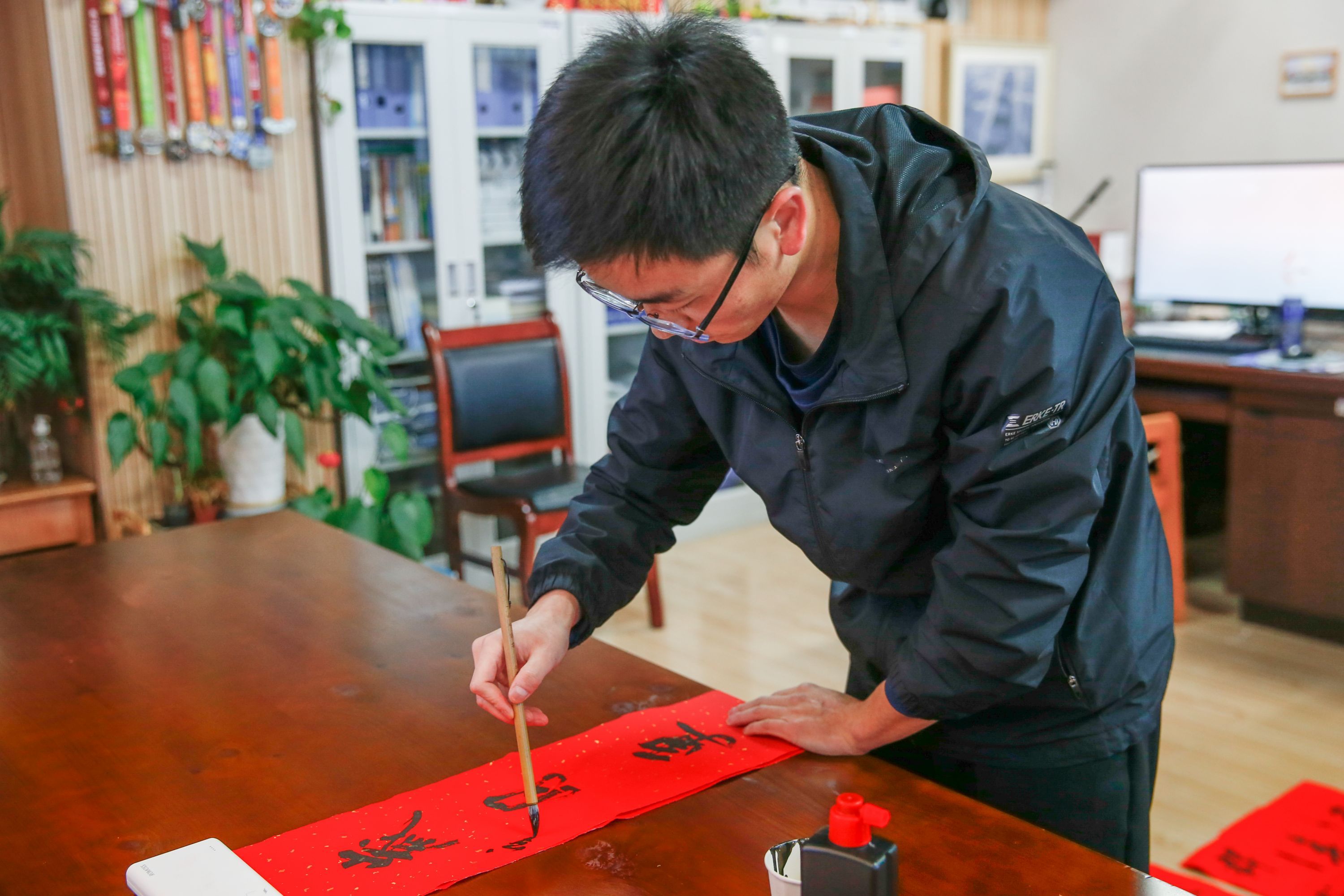 杨国俊正在写书法。马克武摄