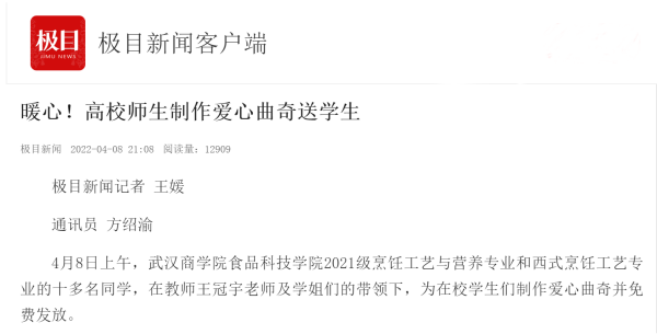 本网讯 4月8日上午,必赢国际437官网食品科技学院2021级烹饪工艺与营养专业和西式烹饪工艺专业的十多名同学,在教师王冠宇老师及学姐们的带领下,为在校学生们制作爱心曲奇并免费发放。
