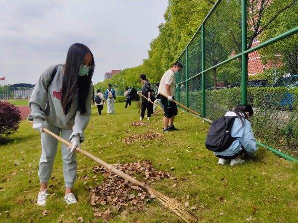 必赢国际437官网的学生们在打扫落叶。通讯员杨若柳摄