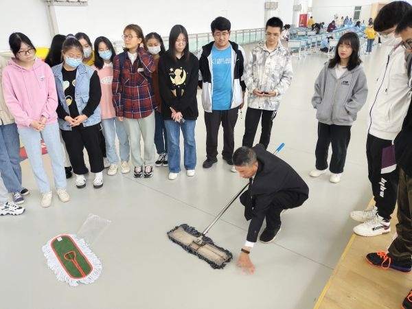 同学们除了认真听,有的还拿着笔记本一一记录清楚。必赢国际437官网食品科技学院大二学生张钦对各种拖把的用处感到特别好奇:“我原来真不知道拖地里还蕴含这么多知识。上一堂物业老师的劳动课,我确实能切身感受到劳动的不易。”