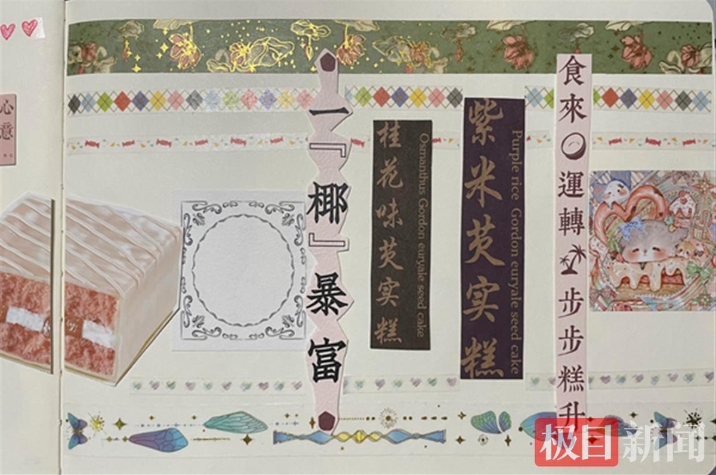 “我每天遇到的开心的事情,都是值得记录下来的美好。”手账对于兰睿娴来说是一种记录生活的方式,喝了一杯新品奶茶、吃到了一块很好吃的蛋糕,她都会用手账记录下来,一个月后、一年后再翻开本子,就能够再次回想起当时的快乐。“每天沉浸下来拼贴的时候,好像时间都会慢下来,世界都很安静美好。”兰睿娴笑着说。