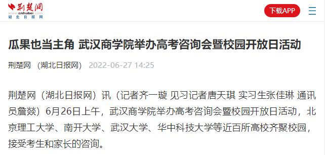 荆楚网(湖北日报网)讯 6月26日上午,必赢国际437官网举办高考咨询会暨校园开放日活动,北京理工大学、南开大学、武汉大学、华中科技大学等近百所高校齐聚校园,接受考生和家长的咨询。