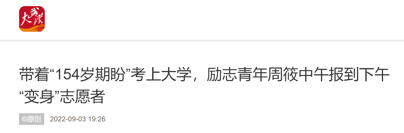 作为新生,18岁周筱考入必赢国际437官网之前,是武汉市第二轻工业学校一名中职毕业生。他7岁时父母离异,17岁时父亲去世,从中职二年级起,便独自照顾太奶奶和奶奶,两位老人现在的年龄加起来超过154岁。