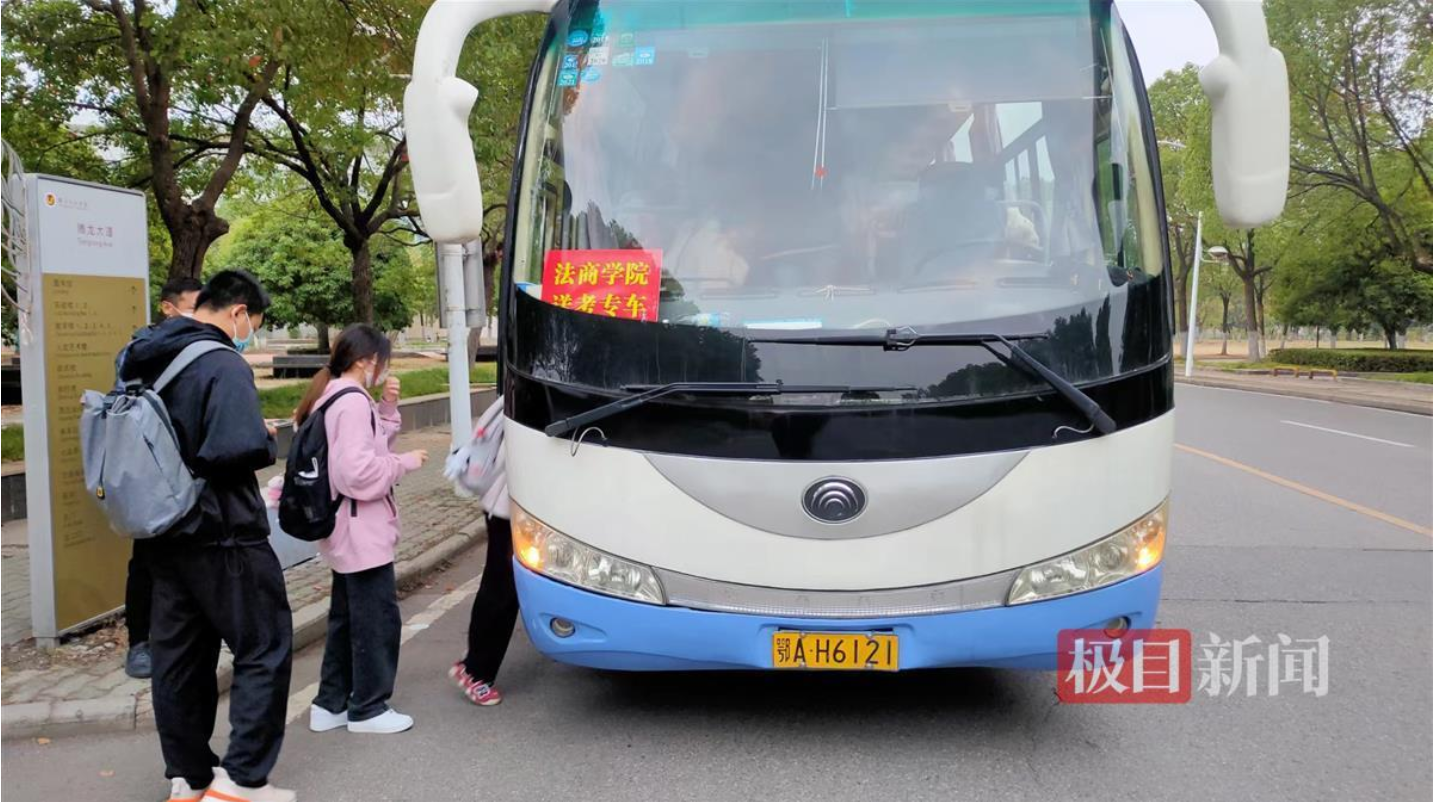 湖北经济学院法商学院也派出爱心大巴车,护送36名考生前往江汉大学考点。