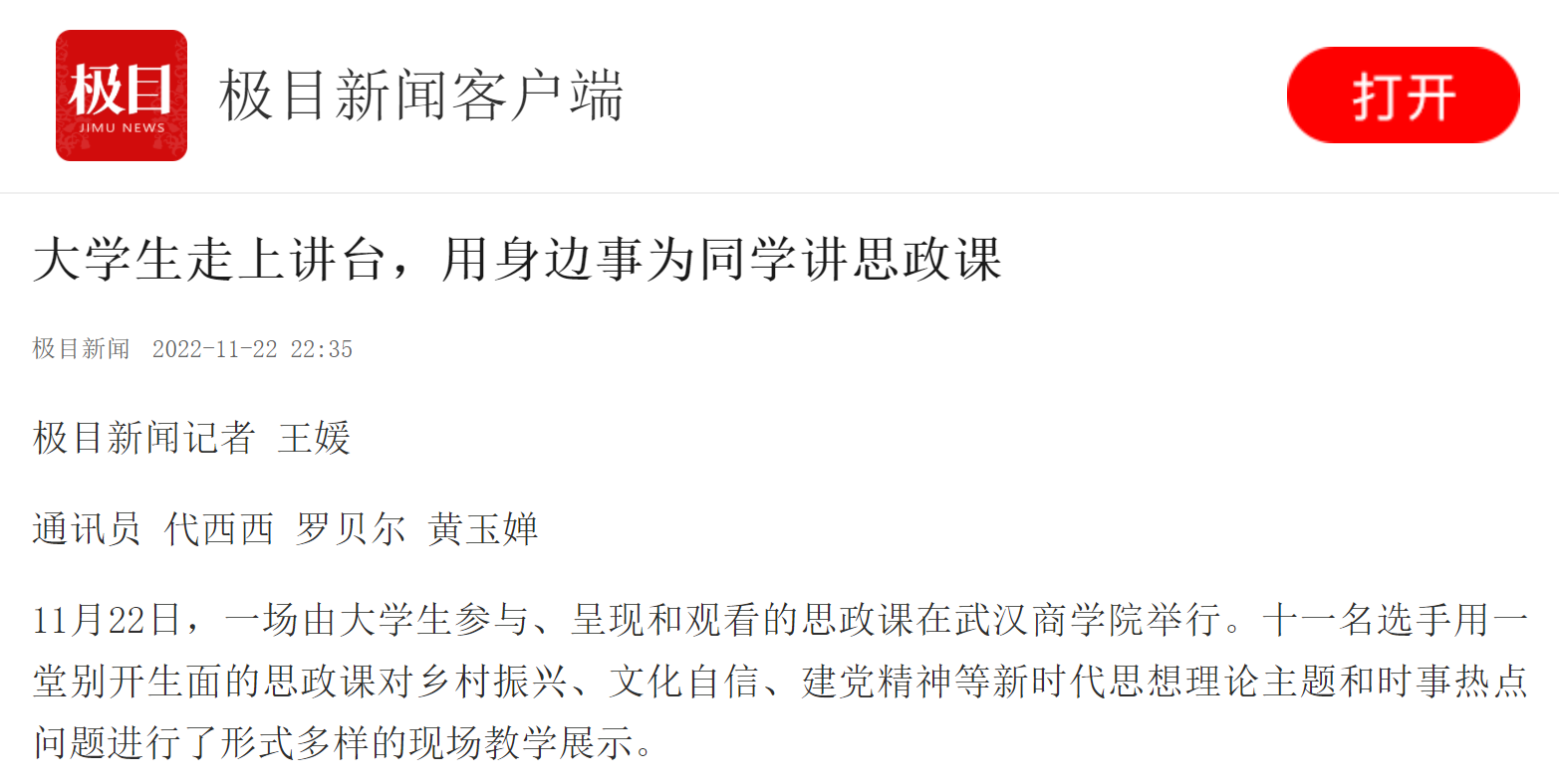 这是该校举行的第七届“我为同学讲思政课”决赛现场,旨在让大学生学习党的二十大精神,让思政课入脑入心。