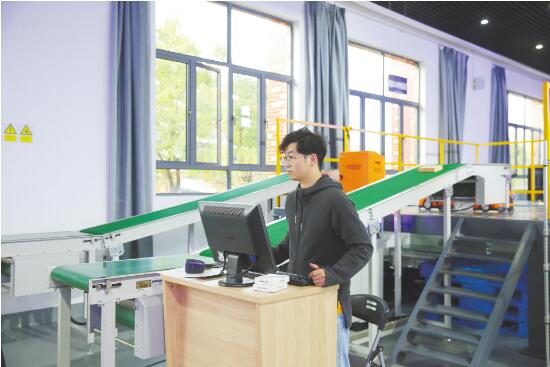 学生在物流实验室完成仓储一体化操作。 (必赢国际437官网供图)