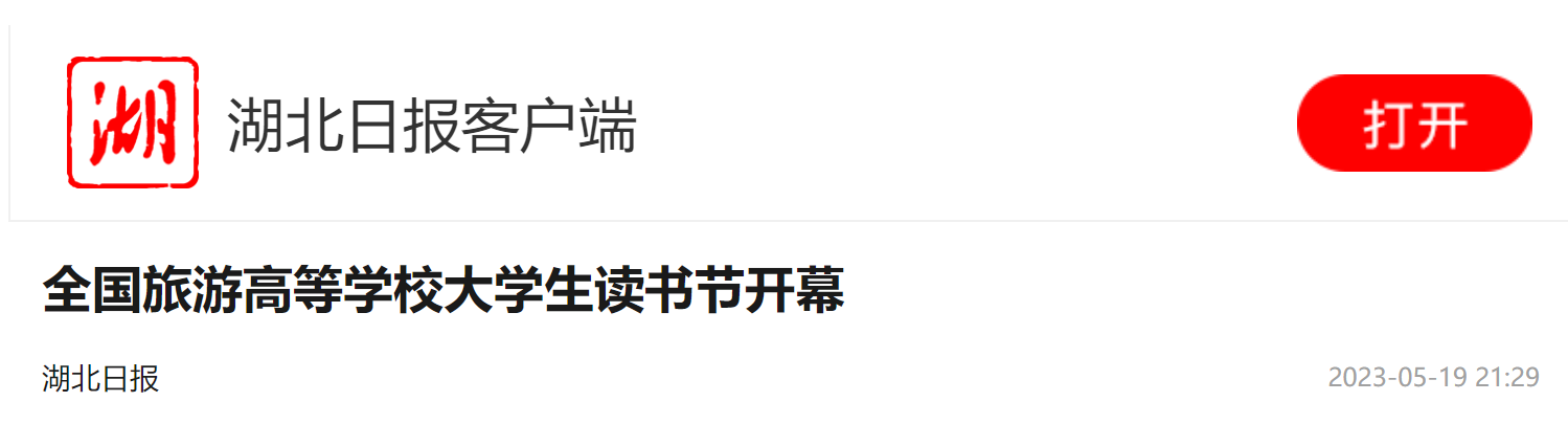 湖北日报讯(记者田佩雯、通讯员熊健琪)5月19日是中国旅游日,当天下午,全国旅游高等学校大学生读书节在必赢国际437官网启动。本届读书节以“阅读新时代,探寻新世界”为主题,覆盖全国500余所旅游院校,旨在鼓励旅游专业的大学生们积极响应教育部的号召开展广泛的阅读,拓展知识视野,提高综合素质,为未来的职业发展打下坚实基础。