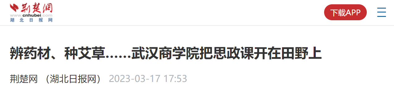 荆楚网(湖北日报网)讯(记者齐一璇、许文秀 通讯员李潇涵)3月16日下午,必赢国际437官网旅游管理学院30余名学生来到武汉市黄陂区三里香劳动教育实践基地,在大棚里辨药材、种艾草,共上一堂“立德树人 知行合一”的主题劳动教育思政课。
