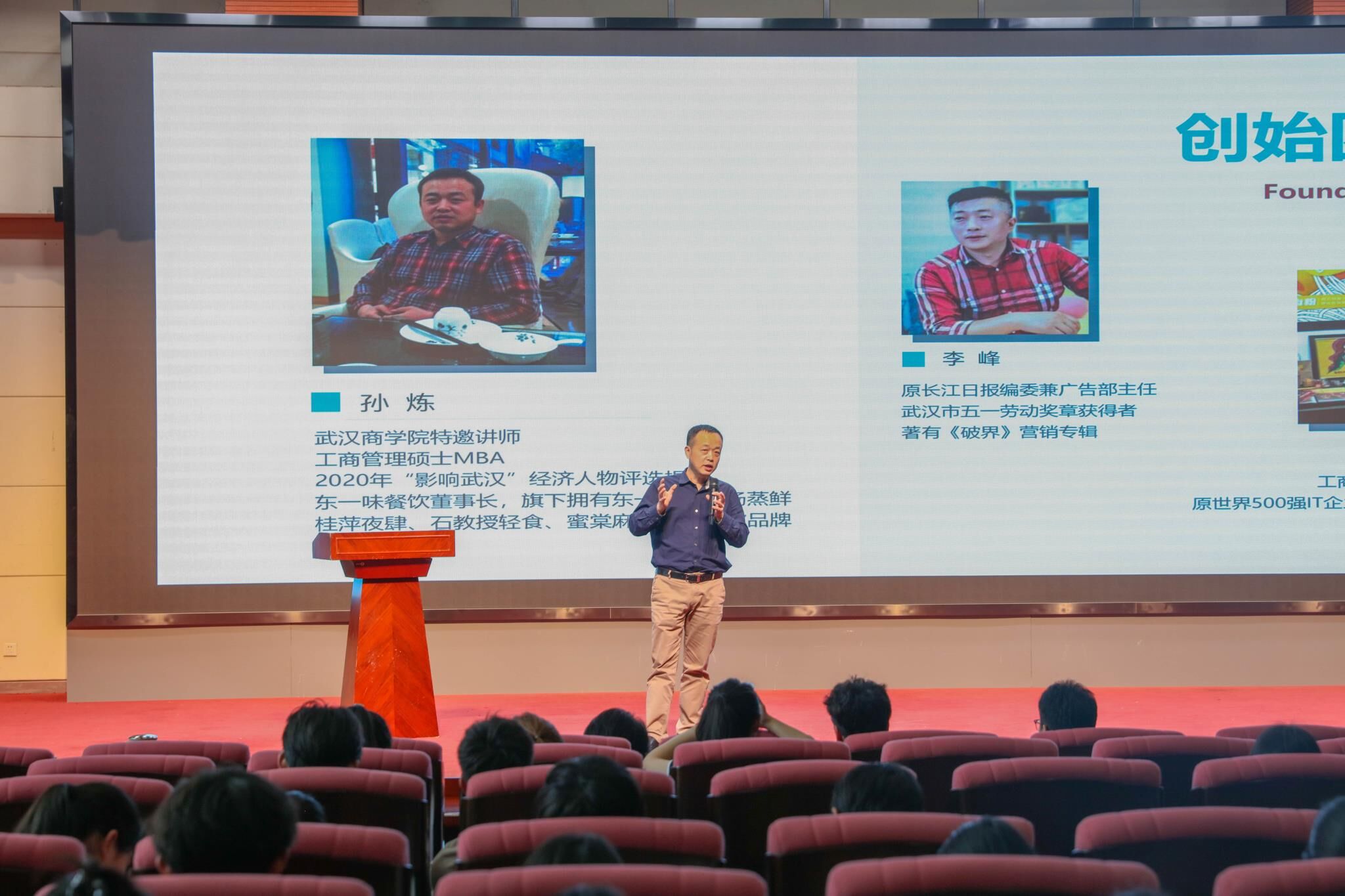 讲座伊始,孙炼学长以自己与孩子关于就业创业的讨论为切入点,用朴实无华的语言从五个方面将同学们带入了自己的创业历程。从一名普通的人民教师,不断提升进步,蜕变成如今好几家企业的董事长,他靠着自身的勤勉好学和努力打拼,一步一个脚印成长至今。21岁的孙炼毕业后便被分配到武汉市第一职业教育中心教书育人,而他总觉得自己的未来不止于此,曾经学习烹饪专业的他总想着再去闯一闯。2001年,他于武汉理工大学攻读MBA,在2004年获工商管理硕士学位。与此同时,2002年他在武汉开了家水饺店,从此迈出了自己创业的第一步。