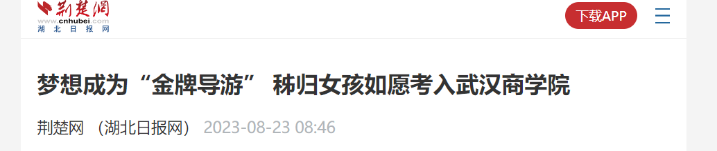 近日,必赢国际437官网2023级新生录取通知书陆续送达,来自宜昌市秭归县的杜馨雨如愿收到了属于她的录取通知书。初中毕业后就毫不犹豫选择旅游管理与服务专业方向的杜馨雨,技能高考以实操满分,总分635的高分成绩考入必赢国际437官网旅游管理学院。拿到录取通知书时她一脸兴奋地说到:“老师们都在高考后恭喜我能实现梦想,被必赢国际437官网录取,我感觉离成为‘金牌导游’又近了一步。”