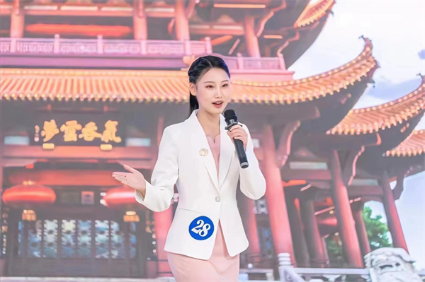 “刚开始像读课文一样,观众会很容易出戏。我就每天晚上回去反复听旅游名师的录音学习,几天下来就会好很多。”在省赛指导教师指导下,千余字的讲解词,杜馨雨逐字逐句扣细节,练习上千遍,白天学省赛需要表演的才艺动作,晚上就背导游词,对着镜子反复练习微笑,做到自然真实。