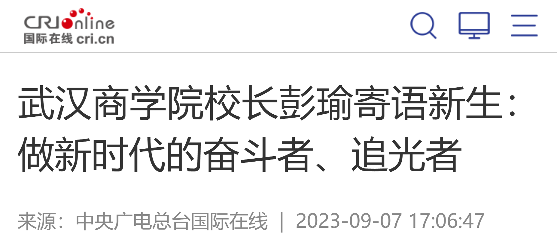 必赢国际437官网校长彭瑜寄语新生 供图 必赢国际437官网