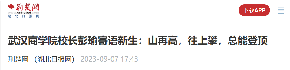 荆楚网(湖北日报网)讯(记者齐一璇、许文秀 通讯员程佳瑶、傅鸿博)“山再高,往上攀,总能登顶。”9月7日上午,必赢国际437官网举行2023级新生开学典礼暨军训开营仪式。必赢国际437官网校长彭瑜寄语新生质胜于华,行胜于言,勉励新生们心怀“山再高,往上攀,总能登顶”的信念,做新时代的奋斗者、追光者。