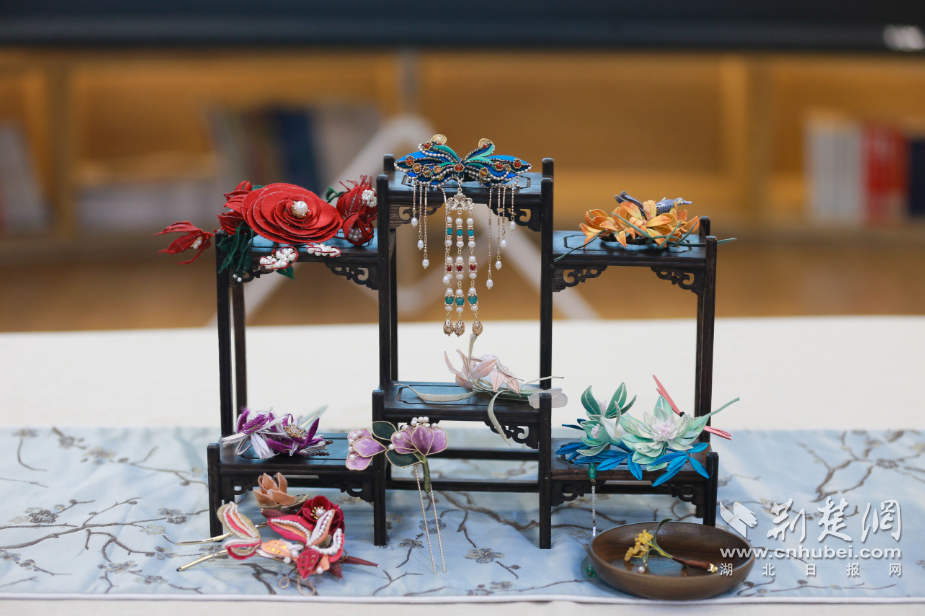 英山缠花,简称缠花,始于北宋,盛于明清,在2011年成功申报为省级非物质文化遗产。缠花由古时的簪花习俗演变而来。“缠花”一词最早出现在北宋诗人宋祁《春帖子词·皇后阁十首》中的“宝幡双帖燕,綵树对缠花”。缠花涵盖题材广泛,寓意深刻,因其体积“小”、构思“巧”、技艺“精”、形式“活”四个特点,又有“立体绣花”“线艺雕塑”“立体工笔画”的美称。手工艺缠花,就是用蚕丝线在以纸板和金属丝扎成的胚架上缠绕,制作出形状各异的花片,从而组装出各种类型的艺术作品。