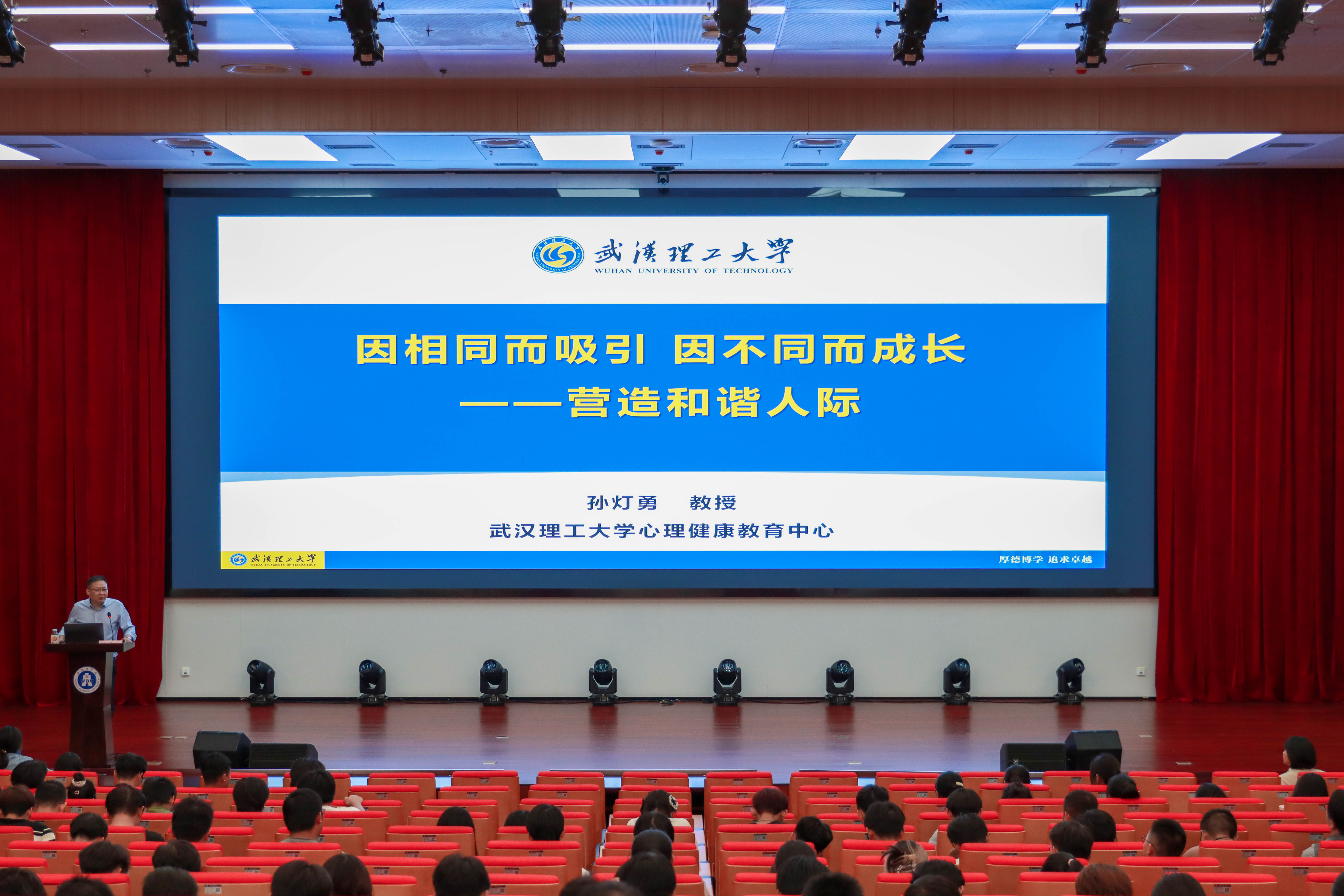 本网讯 10月17日晚,在南区大学生中心,一场别开生面的主题讲座在此开展,曾有过多项心理救扶工作经验的武汉理工大学教授孙灯勇围绕着“营造和谐关系”这一主题为在场学生展开生动的讲解。