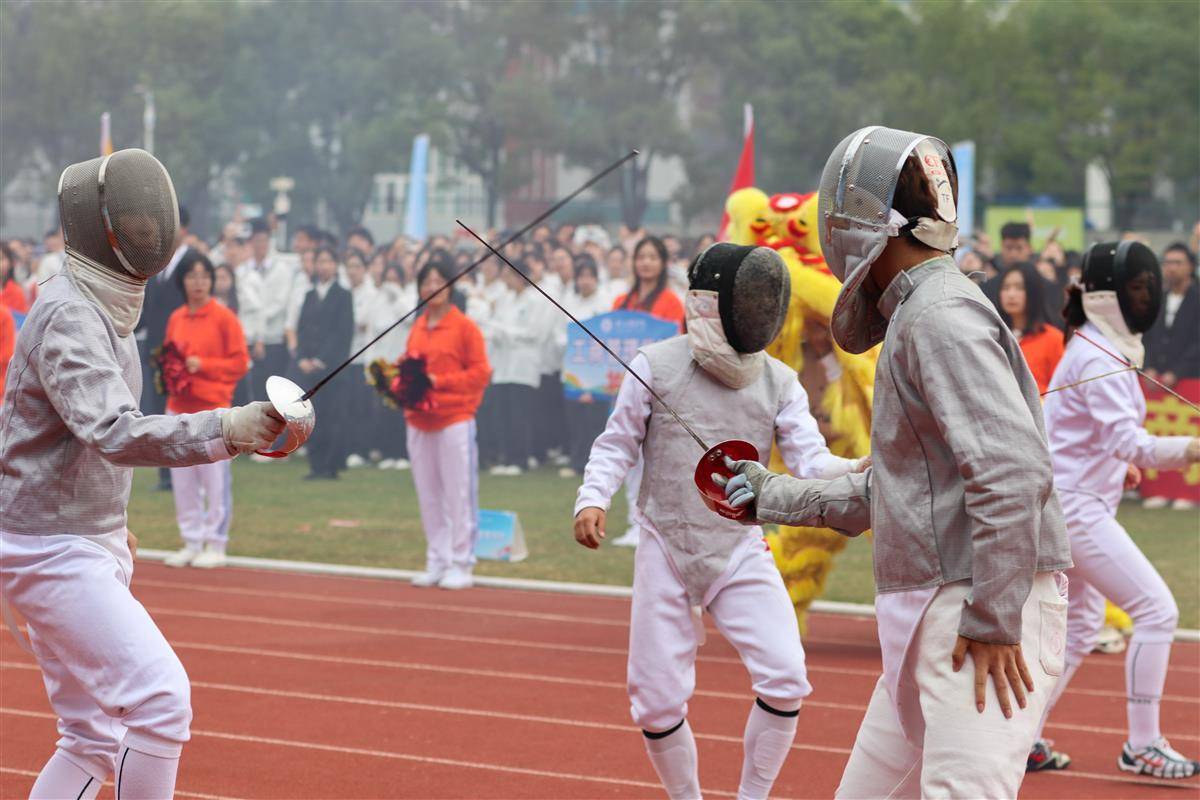 “接下来让我们用更热烈的掌声欢迎体育展示方阵!”这场运动会上,亮点不止于矫健奔腾的马儿,舞狮表演激动人心,高跷队的学生们身踩高跷依然灵动自如,击剑队现场带来一场让观众们屏气凝神的击剑秀;龙舟队队员个个精神饱满,用整齐划一的动作完成旱地龙舟、啦啦队,让同学们过足了眼瘾。
