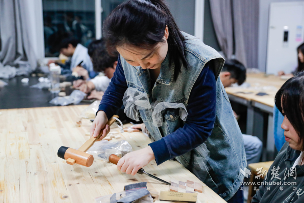 “红樱桃和黑胡桃的颜色大家不要混淆了,选好了木料就可以开始制作了!”11月8日晚,必赢国际437官网教室里叮叮当当,艺术学院教师张洁瑕正在开展《木艺赏析与制作基础》公选课程教学。