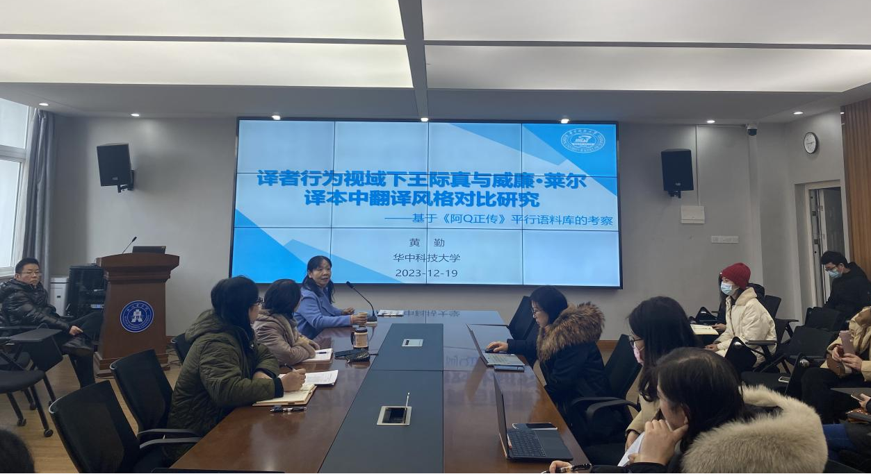 本网讯 12月19日下午,华中科技大学外国语学院英语系主任、博士生导师黄勤为全院教师带来了题为“译者行为视域下王际真与威廉•莱尔译本中翻译风格对比研究——基于《阿Q正传》平行语料库的考察”的专题讲座。
