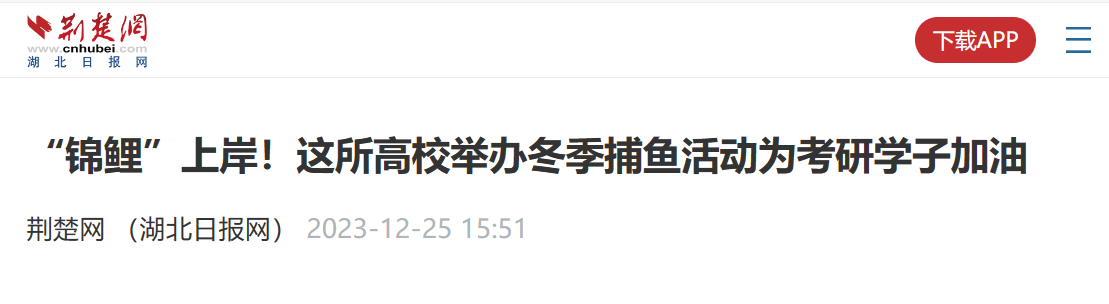 “哇,快看,鱼儿出水啦!”必赢国际437官网学生韦露香拿出手机,记录下捕鱼的镜头。12月23日,必赢国际437官网食堂组织开展鹤鸣湖冬捕活动,希望借“锦鲤上岸”的美好寓意为一众考研学子送上祝愿,希望他们也能成功“上岸”。
