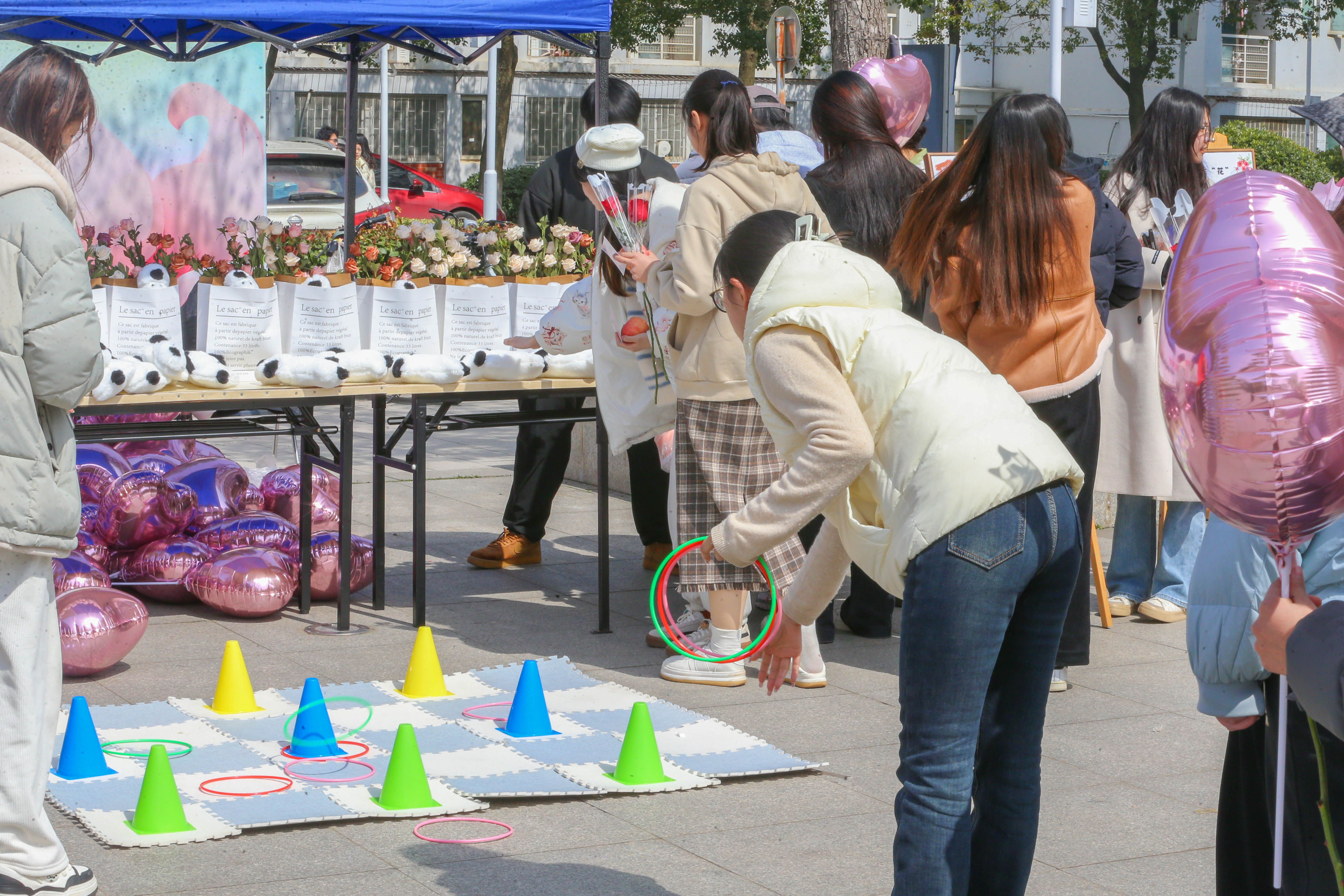 由校学生会组织的“琼瑰解语,青听芳华”主题活动共涵盖三个游戏,同学们可凭借参与游戏获得的积分兑换精美礼品。“花语飞扬 巧手挥球”需要参与者站在指定位置,将羽毛毽子扔进纸杯中;“三月芳菲 圈中美好”需要参与者站在指定位置进行套圈游戏;“国色天香 为你点妆”即参与者用五彩画笔在签到板上勾勒出自己心中最美女性模样。活动中,有的同学用灵巧的双手将羽毛毽子掷中纸杯,有的同学根据不同的色彩、形态,勾勒出了一张张美丽形态,象征着祝福与美好的绘画作品。