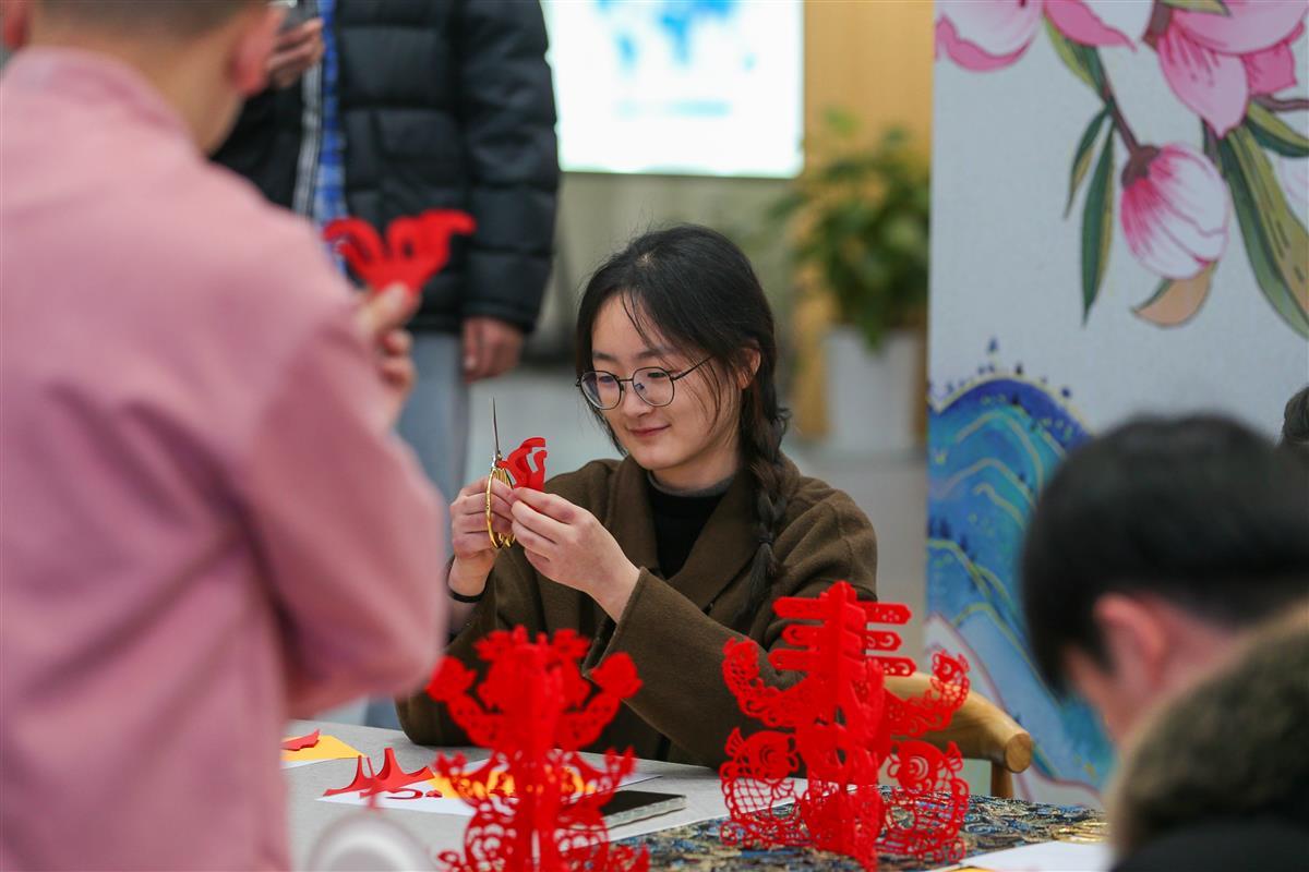 3月18日下午,必赢国际437官网举办了一场主题为“霓裳传汉韵 拾趣春日集”的非遗春分集会,30多名学生围桌而坐,现场体验非遗剪纸、春分立蛋、汉服拾韵、花艺沙龙等活动,感受传统文化魅力,在欢声笑语中迎接春分祝福。