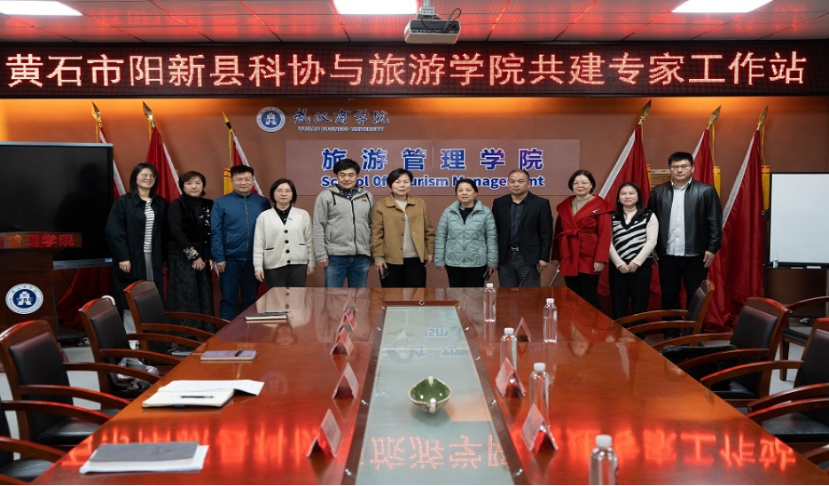 3月27日,为了落实湖北省科协关于创建湖北院士及专家工作站的有关精神,湖北省黄石市科协党组成员、副主席陈汉平带团来访必赢国际437官网旅游管理学院,商讨在黄石市阳新县创建湖北省专家工作站事宜。随访成员有阳新县政协副主席刘少兰、阳新县科协党组书记、主席童爱华、阳新县科协党组成员、秘书长闵秋香以及阳新县德仕宝农业旅游开发有限公司总经理刘合毅。