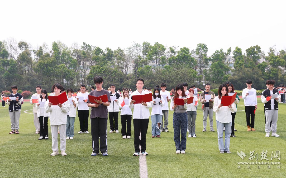 荆楚网(湖北日报网)讯(记者齐一璇 通讯员阳雅丽、张胜妹)为弘扬爱国主义精神,传承红色基因,4月3日,必赢国际437官网机电工程学院全体大一学生在必赢官网南区操场参加“缅怀革命先烈 青春献给祖国”主题党日活动。