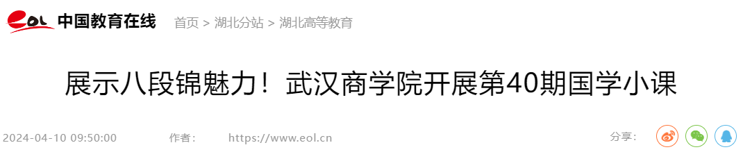 理论知识讲授完成后,项楷先生便带领大家开始实操。他亲自示范了八段锦的每一个动作,并详细讲解了每个动作的要领和注意事项。在项楷学生专业的指导下,大家认真学习每一个动作,跟随音乐调整呼吸,双臂抬起、掌心外旋、稳扎马步,一招一式整齐划一。“初学者先把动作练好,熟练后再配合呼吸方法。练习前,最好先热身,做完后要收功,比如,轻轻拍打头部、搓耳朵、敲击感觉酸痛的部位等。“第一次听说八段锦这个词语是在今年春晚,当时我喜欢的歌手周深演唱了一首《健康到到令》,这首歌曲的歌词中包含了八段锦的内容,是一种健康养生的体操。我平时也比较关注养生方面的知识,了解中医调理与生活作息,我就对这次国学小课的内容产生了强烈的兴趣。果不其然,这次跟着项老师的步伐,真的让我体会到了一点养生之道,我整个人都处于一种放松的状态,简直棒极了!”2023级外国语学院翻译一班刘佳硕感慨地说。