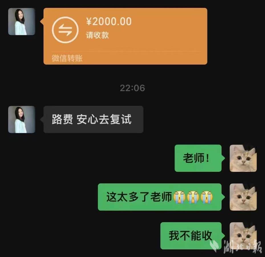 3月26日晚10点多,舒紫嫣的手机收到一条转账提醒,沈青向舒紫嫣转账2000元路费,让她安心复试,不要有后顾之忧。