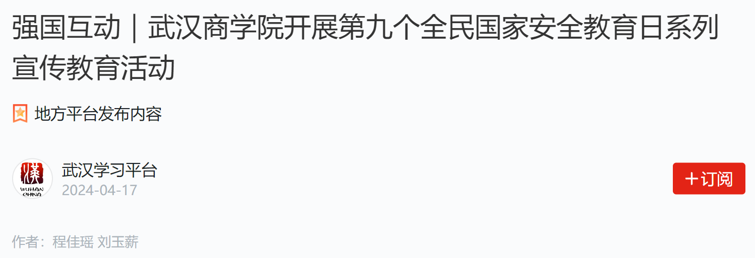 同时,学校建成必赢国际437官网国家安全主题教育园,获批武汉市第三批市级国家安全示范教育基地。